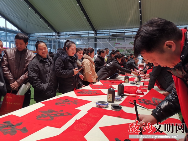 “三下鄉(xiāng)”活動中,書法家現(xiàn)場送春聯(lián)。