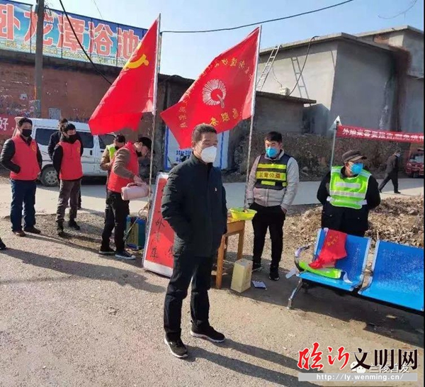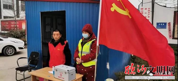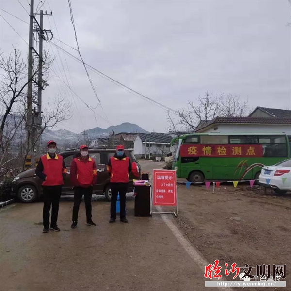 莊塢鎮(zhèn)新時代文明實(shí)踐志愿者在檢測點(diǎn)執(zhí)勤