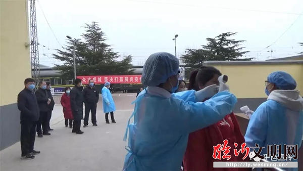 平邑縣婦幼保健院新時代文明實(shí)踐志愿服務(wù)隊(duì)志愿者們?yōu)槌丝腕w溫檢測、登記,嚴(yán)把防控關(guān)。