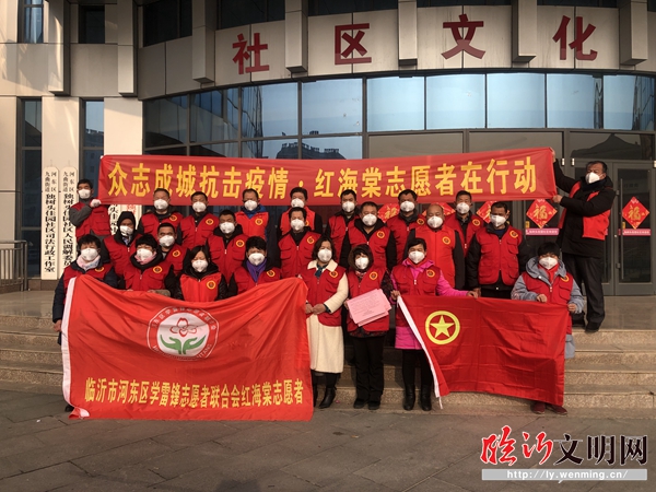 臨沂市河?xùn)|區(qū)朝陽街道新時代文明實(shí)踐站的志愿者們。面對疫情,他們主動請戰(zhàn),不畏嚴(yán)寒和疫情,走上街頭。