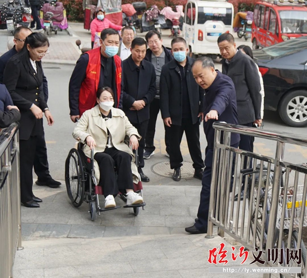 為助推全國文明城市創(chuàng)建工作,完善城市無障礙環(huán)境建設(shè)。3月28日上午,市殘聯(lián)黨組書記、理事長陳建光到蘭山區(qū)開展城市無障礙環(huán)境建設(shè)體驗(yàn)督導(dǎo)活動并調(diào)研。市殘聯(lián)黨組成員、四級調(diào)研員秦東、顏士斌等一同參加督導(dǎo)調(diào)研活動。
