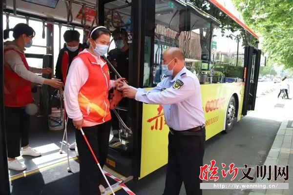 公交站前,同儕教練郭萬成分享了自己的乘車經(jīng)驗和注意事項,司乘陳師傅現(xiàn)場介紹了如何使用公交車可調(diào)節(jié)底盤、無障礙踏板等,學(xué)員們乘坐無障礙公交車,沐浴著初夏的朝陽和微風(fēng),穿越沂河兩岸,前往第一個打卡目的地——市圖書館。
