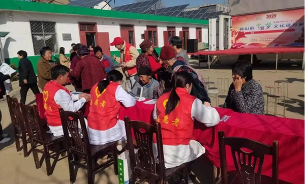 義診送健康。義診區(qū)同樣忙碌,來自鎮(zhèn)衛(wèi)生院的醫(yī)護志愿者們仔細(xì)地為老人測量血壓,進行心肺聽診等常規(guī)檢查,并耐心解答老人們提出的各種健康問題,針對不同的身體狀況給予專業(yè)的用藥和生活建議。