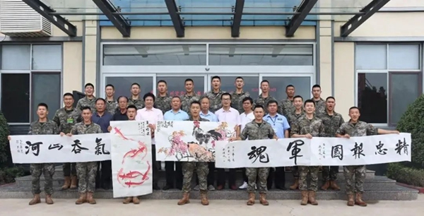 7月29日,平邑縣文聯(lián)組織書(shū)畫(huà)藝術(shù)家到平邑武警中隊(duì)開(kāi)展“書(shū)畫(huà)進(jìn)軍營(yíng)”文化擁軍活動(dòng)。 活動(dòng)現(xiàn)場(chǎng),書(shū)畫(huà)家們展卷提筆、揮毫潑墨、以字傳情、以畫(huà)達(dá)意,一幅幅氣勢(shì)磅礴的書(shū)法一氣呵成,一張張富有神韻的畫(huà)卷一揮而就,贏得了官兵們的連連稱贊。活動(dòng)中,書(shū)畫(huà)家與官兵積極互動(dòng),手把手傳授“捻頓帶收”技巧,面對(duì)面講解“篆隸楷行”特點(diǎn),讓現(xiàn)場(chǎng)官兵切實(shí)感受到了中國(guó)傳統(tǒng)文化的獨(dú)特魅力。 本次文化擁軍活動(dòng),通過(guò)現(xiàn)場(chǎng)創(chuàng)作、贈(zèng)送書(shū)畫(huà)作品等形式,表達(dá)了軍民的深情厚誼,豐富了部隊(duì)文化生活。 |