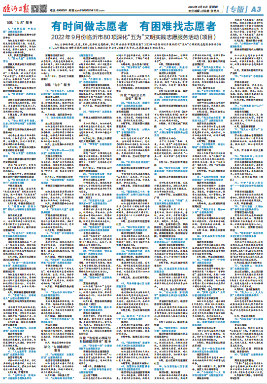 有時間做志愿者 有困難找志愿者 2022年9月份臨沂市80項深化“五為”文明實踐 志愿服務活動(項目)