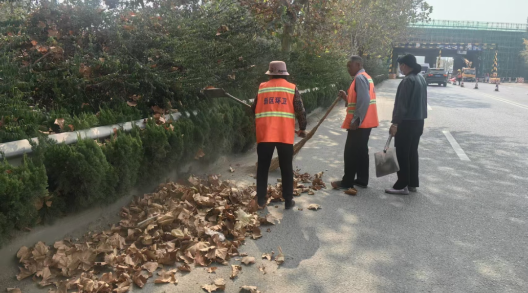 精細(xì)人工保潔作業(yè),保障清潔效果。針對(duì)機(jī)械作業(yè)無法到達(dá)的背街小巷等區(qū)域,利用“推水式”人工清掃作業(yè),采取落葉集中裝袋、循環(huán)收集、統(tǒng)一收運(yùn)的方式,確保及時(shí)有效清理落葉。