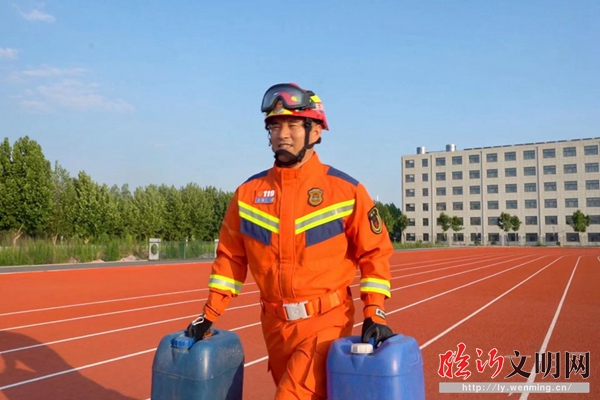 八月的驕陽炙烤著沂蒙大地,在臨沂市消防救援支隊雙嶺路特勤站院內(nèi),政治指導(dǎo)員王偉和戰(zhàn)友們?nèi)蔽溲b,進行著日常訓(xùn)練,豆大的汗珠從王偉臉頰滑落,作訓(xùn)服更是一擰一大攤水,但王偉依然不停地給大伙打氣,“加油!訓(xùn)練時成績快一秒,救援時就能快一秒!”訓(xùn)練場上響徹著王偉的聲音。 王偉成長在沂蒙這片紅色熱土上,感天動地、輝映千秋的沂蒙精神早已深深刻入他的骨髓。參加消防工作以來,王偉一直用行動踐行著沂蒙精神,埋頭苦干、勇毅前行。作為全市消防救援隊伍的“拳頭”和“尖刀”,王偉和他的戰(zhàn)友們不但承擔(dān)普通消防站任務(wù),還擔(dān)負著全市特種災(zāi)害事故應(yīng)急救援和特殊火災(zāi)撲救任務(wù)。