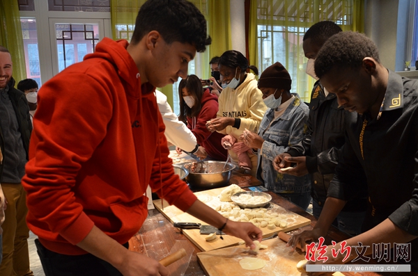 留學生們體驗包餃子。 人群中,來自幾內(nèi)亞的留學生陳瑞最為興奮。“對我們留學生來說,學寫書法是最具挑戰(zhàn)性的事情。我覺得書法很有意思,學習書法的時候,我能感受到中國文化的博大精深,盡管現(xiàn)在我還不怎么熟練,但我日后一定會多多練習。”陳瑞說,來臨沂3年,他深切地感受到臨沂是一座歷史悠久、文化厚重的城市,“這座城市每個角落都極具獨特的人文內(nèi)涵和文化底蘊,在這里,古老與現(xiàn)代似乎達到了某種契合,并迸發(fā)出了新的活力。” 作為逢年過節(jié)的壓軸大戲,包餃子自然是不可或缺的體驗環(huán)節(jié)。上午11點,感受過傳統(tǒng)民俗文化后,留學生們又移步上小館,一起體驗包餃子。在老師們的幫助下,包括陳瑞在內(nèi)的外國留學生們,搟皮的搟皮,填餡的填餡,在一片歡快的笑聲中,大家一起動手,把對新春的祝愿和對生活的希望統(tǒng)統(tǒng)包進了小小的餃子里。品嘗著自己親手包的餃子,陳瑞說,這次民俗體驗有趣、有料、有味、有品,不僅讓他更好地了解了中國傳統(tǒng)年節(jié)習俗,也讓他體驗到了中國之美、文化之美。