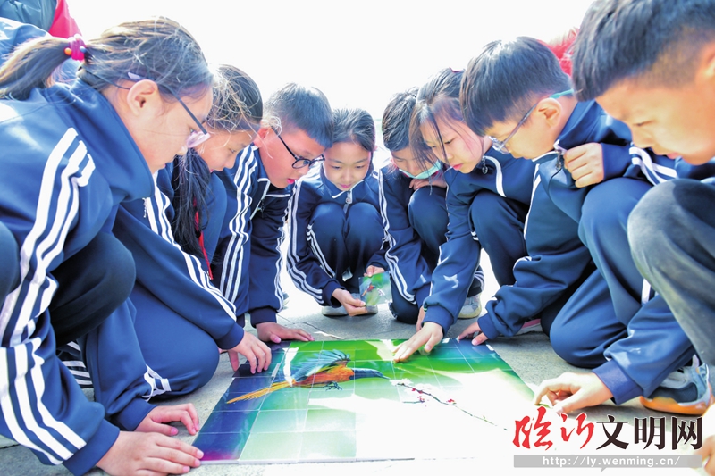 參加活動(dòng)的小學(xué)生在進(jìn)行鳥類拼圖比賽