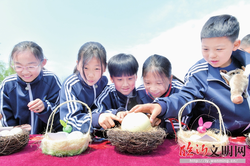 護(hù)鳥志愿隊(duì)的志愿者向小學(xué)生講解愛鳥護(hù)鳥知識(shí)