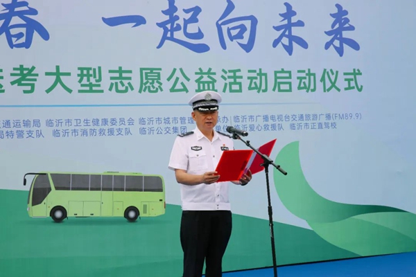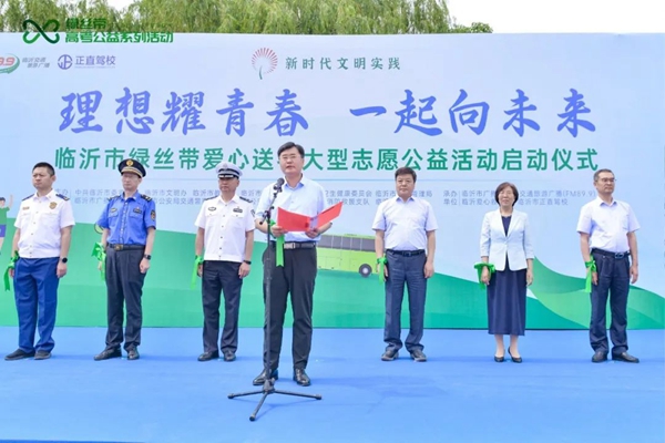 中共臨沂市委宣傳部副部長(zhǎng) 三級(jí)調(diào)研員 張慶功宣布臨沂市“綠絲帶”愛心送考活動(dòng)正式啟動(dòng)