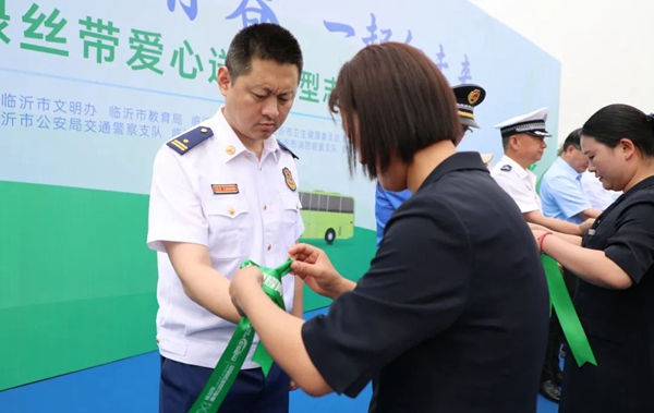 主辦單位領(lǐng)導(dǎo)為愛心志愿者車輛系綠絲帶 高考期間,全市發(fā)行“綠絲帶”作為臨沂市愛心送考大型志愿公益活動(dòng)的統(tǒng)一標(biāo)志,所有接送考生的私家車和愛心送考志愿服務(wù)車輛均以“綠絲帶”為標(biāo)志。