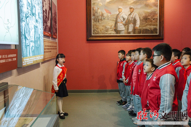 臨沂素稱沂蒙,是全國著名的革命老區(qū),是沂蒙精神的主要發(fā)源地。近年來,臨沂市把沂蒙精神這一寶貴“富礦”,融入學(xué)校、家庭、社會、網(wǎng)絡(luò)、心理健康等全環(huán)境立德樹人各領(lǐng)域,沂蒙大地正在奏響一曲悠揚(yáng)的全環(huán)境立德樹人“交響曲”。 舉旗定向、固本培元,實(shí)現(xiàn)立德樹人“鑄魂” “快速縱隊起如飛,印緬桂來自鼓吹。魯南泥濘行不得,坦克變成廢鐵堆……”在華東野戰(zhàn)軍紀(jì)念館,“沂蒙紅”紅領(lǐng)巾志愿宣講團(tuán)小宣講員張靈溪,正在用清脆、有力的聲音給參觀者深情講述“魯南戰(zhàn)役”。
