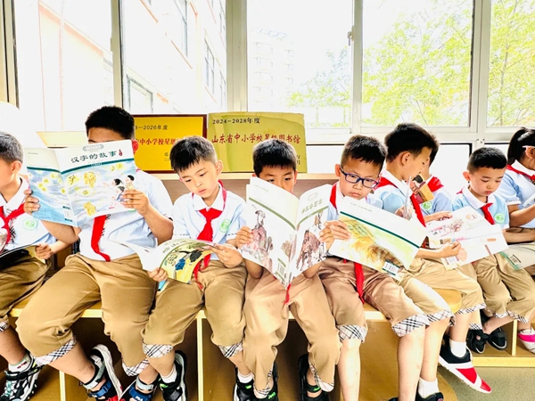 在臨沂樸園小學(xué)的讀書角,學(xué)生們正在認(rèn)真閱讀《中華優(yōu)秀傳統(tǒng)文化少兒繪本大系》。他們被原汁原味的經(jīng)典故事、生動有趣的圖文表達(dá)、童心童趣的互動游戲所深深吸引,快樂地在繪本世界中暢游。