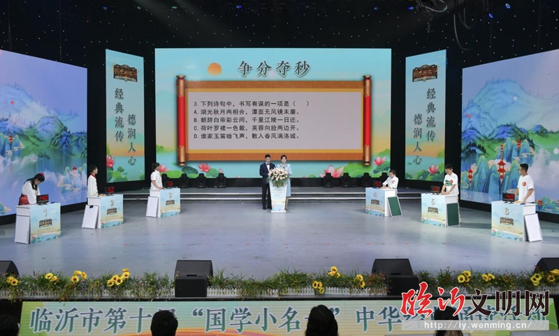 五千年的悠久歷史 孕育了底蘊(yùn)深厚的華夏文明 源遠(yuǎn)流長的古典詩文 筑就了經(jīng)久不衰的民族瑰寶 誦讀中華經(jīng)典 讓華夏精神在我們的血脈中流淌 對話古代圣賢 讓中華美德支撐我們?nèi)烁竦募沽?/p> 9月25日,臨沂市第十屆“國學(xué)小名士”中華經(jīng)典誦讀電視大賽總決賽在市廣播電視臺(tái)一樓演播大廳拉開帷幕。經(jīng)過三輪比拼,王逸田、孫慶鎧、陳晨獲小學(xué)組一等獎(jiǎng),喬怡軒、陳俊霖、張梓萌獲中學(xué)組一等獎(jiǎng),孫楊已晗、李硯君、蔡思琪獲大學(xué)組一等獎(jiǎng)。