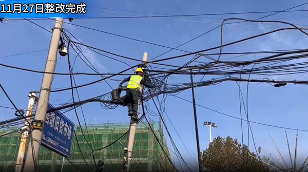 去年12月,就有市民通過(guò)“12345·臨沂首發(fā)”平臺(tái)反映,該處線纜垂落,存在安全隱患。記者實(shí)地探訪后發(fā)現(xiàn),該路口的線纜錯(cuò)綜復(fù)雜,宛如一張“蜘蛛網(wǎng)”,懸掛在道路上方,沿街部分線纜甚至垂落至離地面兩三米的高度,不僅影響市民通行,更存在安全隱患。沿街商戶對(duì)此表示擔(dān)憂:“這些線纜太危險(xiǎn)了,風(fēng)一吹就搖搖晃晃,我們停車(chē)時(shí)都提心吊膽,生怕線纜掉下來(lái)?!?/p> 空中“蜘蛛網(wǎng)”的整治,一頭連著城市環(huán)境的整潔度、美觀度,一頭連著居民的安全感、幸福感。 然而,由于該路口的線纜涉及多家運(yùn)營(yíng)商,整治并非易事。電信公司維護(hù)部負(fù)責(zé)人程建祥說(shuō):“沒(méi)有其他運(yùn)營(yíng)商的介入我們也無(wú)法分辨,萬(wàn)一清理錯(cuò)了可能會(huì)影響其他運(yùn)營(yíng)商的用戶使用?!?/p> 為解決這一問(wèn)題,記者積極協(xié)調(diào)移動(dòng)、聯(lián)通、電信三大運(yùn)營(yíng)商,經(jīng)過(guò)初步溝通,各運(yùn)營(yíng)商負(fù)責(zé)人同意將問(wèn)題路口處的在用線纜遷移至地下,并承諾在11月15日前后完成整改。 11月18日記者首次回訪時(shí)發(fā)現(xiàn),盡管三大運(yùn)營(yíng)商將路口正在使用的線纜全部遷移到地下,但道路上空仍懸掛著大量廢棄線纜,且沿街線纜低垂現(xiàn)象依舊存在,同時(shí)還遺漏了兩三根廣電的線纜,問(wèn)題并未得到根本性解決。 為徹底解決該處線纜雜亂的問(wèn)題,記者再次與移動(dòng)、聯(lián)通、電信、廣電四家運(yùn)營(yíng)商進(jìn)行深入溝通,最終達(dá)成共識(shí):將路口處的所有廢棄線纜全部拆除,同時(shí)對(duì)沿街低垂的線纜進(jìn)行重新架高和捆扎處理。 經(jīng)過(guò)一個(gè)多星期的整改,該處線纜整治取得了顯著成效,為市民的出行增添了幾分舒心與愜意,增強(qiáng)了市民的安全感和幸福感。 |