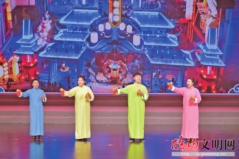 開場舞《合家歡》。 祥龍辭舊年,金蛇迎新歲。1月23日晚,由市委宣傳部、市融媒體中心(傳媒集團(tuán))、市總工會、市文聯(lián)、市文化和旅游局主辦的2025臨沂市鄉(xiāng)村春晚在市工人文化宮職工大劇院舉行。 據(jù)悉,今年“村晚”的主題是“我們的節(jié)日·歡樂中國年”。此前,“村晚”已在沂南縣孫祖鎮(zhèn)東高莊村等地舉行,為廣大群眾呈現(xiàn)了一場場年味十足的視聽盛宴。晚會現(xiàn)場,喜慶的鑼鼓聲率先響起,開場舞《合家歡》拉開“村晚”序幕。而后,群口快板《臨沂城里逛花燈》、歌舞《沂蒙大集》、情景歌舞《臨沂炒雞》、民歌聯(lián)唱《鄉(xiāng)音美》、小戲小劇《以和為貴》、廣場舞聯(lián)舞《春山錦繡》等節(jié)目輪番上演,“唱”出了村民新生活,“舞”出了鄉(xiāng)村新畫卷,傳遞出大家對投身沂蒙鄉(xiāng)村振興、團(tuán)結(jié)實(shí)干向未來的新春祈愿,營造了喜慶熱烈的節(jié)日氛圍,現(xiàn)場氣氛熱烈、掌聲不斷。 市領(lǐng)導(dǎo)張曉彬、王映海現(xiàn)場觀看。 市融媒體中心記者 劉家君 廖杰 攝