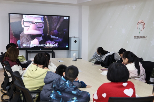 最后,大家一同觀看了電影《飛屋環(huán)游記》。通過觀看影片,告訴孩子們年齡不是追求夢想的障礙,只要有愛,有勇氣,有冒險的精神,就可以實現(xiàn)任何不可能的事情。