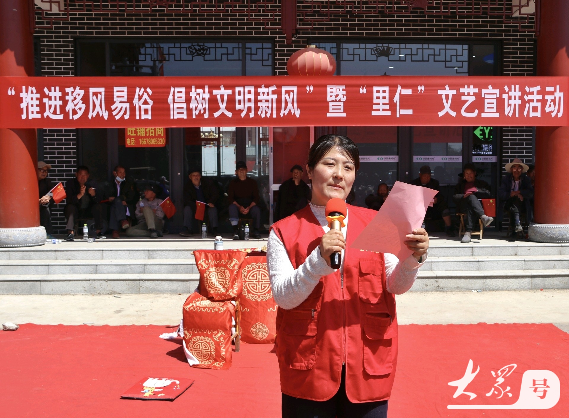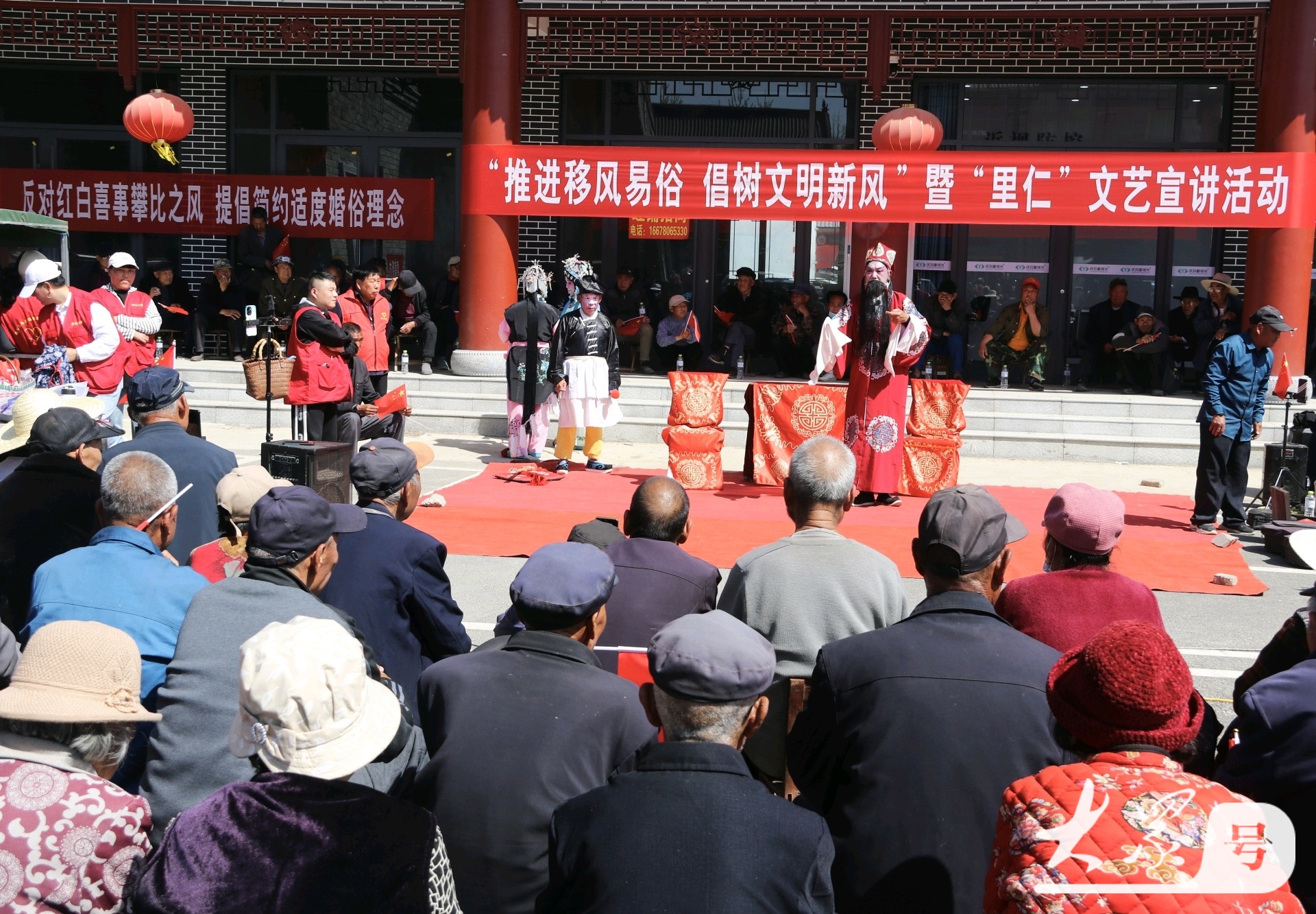 4月15日,郯城縣馬頭鎮(zhèn)“推進(jìn)移風(fēng)易俗,倡樹(shù)文明新風(fēng)”小戲小劇文藝匯演活動(dòng)在古鎮(zhèn)馬頭上演。演員們通過(guò)多才多藝的形式把以移風(fēng)易俗貫穿其中,吸引了眾多村民前來(lái)觀看節(jié)目演出。 這“推進(jìn)移風(fēng)易俗,倡樹(shù)文明新風(fēng)”小戲小劇文藝匯演活動(dòng) ,以“戲”為介,以“文”育人,憑借傳統(tǒng)戲曲把移風(fēng)易俗的清新之風(fēng)送至村民“家門(mén)口”,使群眾于歡聲笑語(yǔ)里涵養(yǎng)文明鄉(xiāng)風(fēng)。演出間隙,郯城縣馬頭鎮(zhèn)新時(shí)代文明實(shí)踐所、馬頭鎮(zhèn)慈善愛(ài)心協(xié)會(huì)的志愿者們變身“文明信使”,向現(xiàn)場(chǎng)群眾送礦泉水,發(fā)移風(fēng)易俗倡議書(shū),積極講解高價(jià)彩禮、厚葬薄養(yǎng)、大操大辦等不文明習(xí)俗的危害,鼓勵(lì)倡導(dǎo)婚事新辦、喪事簡(jiǎn)辦、孝老愛(ài)親、勤儉持家等文明新風(fēng),有力地提高了人民群眾樹(shù)立文明新風(fēng)意識(shí)。(高軍 馬圣秋攝影) |