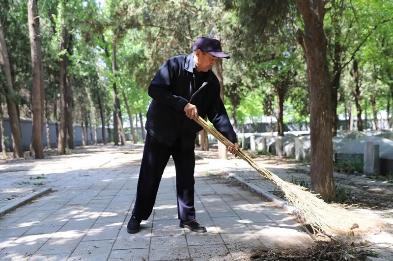 濰坊昌邑飲馬革命烈士陵園中松柏蒼翠 78歲的楊智忠日復(fù)一日地穿行于 720座烈士墓碑間 “守護(hù)英魂是軍旅生涯的延續(xù)”