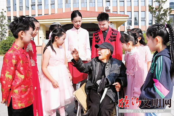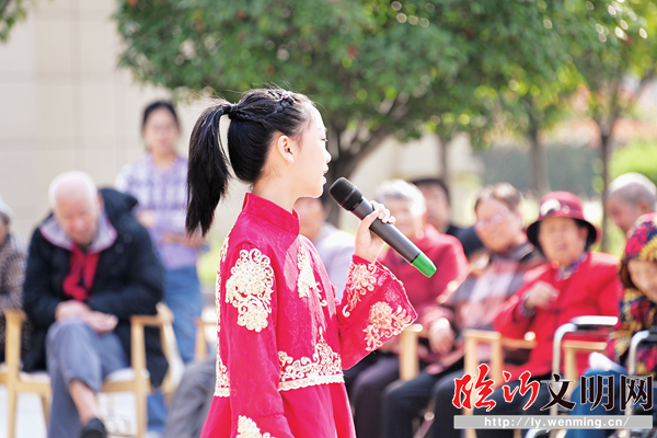 小演員為老人表演節(jié)目。(孫運河 攝) 10月22日上午,在重陽節(jié)到來之際,臨沂市少兒擁軍藝術團的10多名孩子來到羅莊區(qū)社會福利中心,為160多名老人送上節(jié)日祝福。