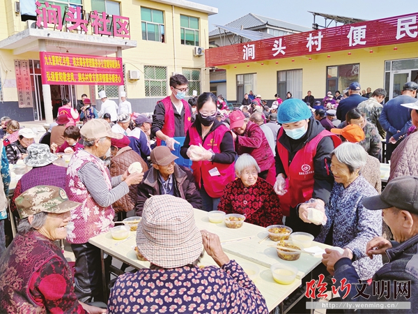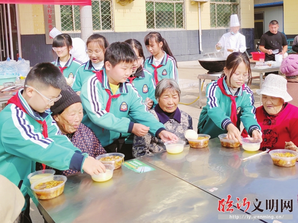 澗頭小學(xué)少先隊(duì)員代表為就餐老人端粥。 10月27日,在重陽節(jié)即將到來之際,臨沂高新區(qū)澗頭村第一書記自費(fèi)舉辦敬老宴,邀請全村60歲以上老年人共進(jìn)午餐。30余名黨員志愿者、青年志愿者和少先隊(duì)員代表化身廚師、服務(wù)員,為近400位老人奉上了一頓暖心餐,以實(shí)際行動(dòng)弘揚(yáng)尊老敬老的中華民族傳統(tǒng)美德。(路波 羅志強(qiáng) 王瀟 攝) |