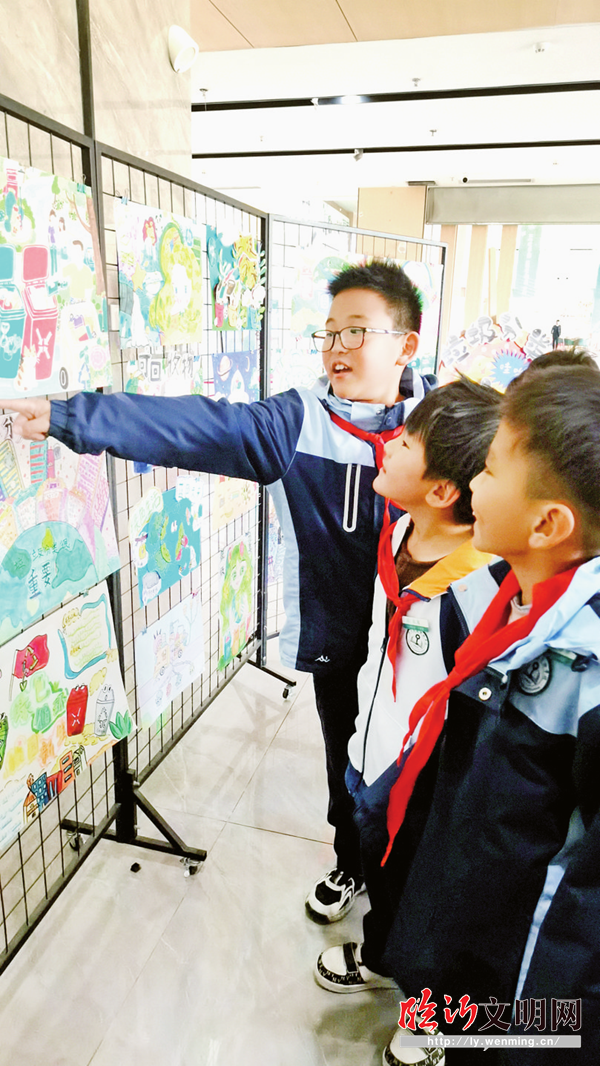 一幅幅垃圾分類主題的繪畫(huà)引來(lái)同學(xué)們爭(zhēng)相欣賞。 11月19日上午,由市城市管理局園林環(huán)衛(wèi)保障服務(wù)中心、市融媒體中心聯(lián)合主辦,山東中環(huán)美城環(huán)保科技有限公司協(xié)辦,臨沂開(kāi)慧實(shí)驗(yàn)學(xué)校承辦的“綠色循環(huán)·校園新生”生活垃圾分類進(jìn)校園主題活動(dòng)第二站舉行。1400多名師生在趣味互動(dòng)中,掌握垃圾分類物歸其位的“通關(guān)密碼”,讓垃圾分類的種子“悄然入心”。(付茜 連娜 菲菲 吳慧 姣姣 如宸 攝) |