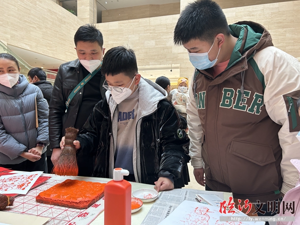 在臨沂市博物館北城館區(qū),大家在書法老師的帶領(lǐng)下一起“筆墨迎新”,寫下自己的新春祝福。木版年畫體驗是每年都有的“保留項目”,喜慶的圖案、簡單的操作流程讓游客流連忘返。 在青少年活動中心舉辦了“瑞兔迎春”傳統(tǒng)剪紙藝術(shù)體驗。剪紙是我國古老的傳統(tǒng)民間藝術(shù),花樣繁多,造型豐富,流傳廣泛,經(jīng)久不衰,已被列入國家級非物質(zhì)文化遺產(chǎn)名錄。經(jīng)過工作人員的講解,家長和孩子共同完成一幅幅剪紙作品,為新年送上溫馨的祝福。