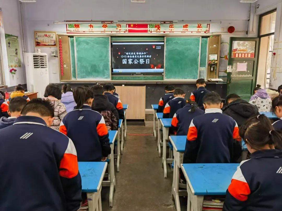 探沂鎮(zhèn)中心完小 12月13日,探沂鎮(zhèn)中心完小開展“國(guó)家公祭日”主題活動(dòng)?;顒?dòng)中,全體師生共同了解南京大屠殺的沉痛歷史,使他們深刻感受到國(guó)家的傷痛與奮斗的意義,隨后,全校師生集體肅立默哀30秒,表達(dá)對(duì)遇難同胞的深切哀悼,以此增強(qiáng)全體師生的國(guó)家認(rèn)同感和民族責(zé)任感。(高亮)