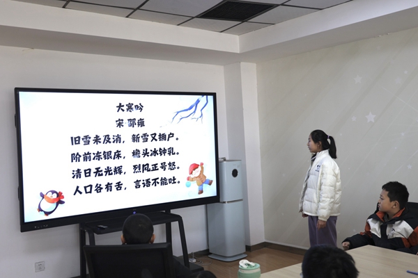 活動(dòng)開始,工作人員詳細(xì)講解了大寒節(jié)氣的由來、特點(diǎn)、習(xí)俗、起居養(yǎng)生等知識(shí),讓小朋友對大寒節(jié)氣有了更深入的了解。 詩說大寒