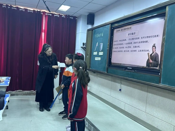石井鎮(zhèn)中心小學 4月1日,臨沂市名師“送教下鄉(xiāng)”活動走進石井鎮(zhèn)中心小學?;顒又?,臨沂市名師朱蘭蘭、劉敏憑借扎實的教學基本功和獨特的教學風格,巧妙運用多媒體教學手段,為同學們帶來了精彩的課堂教學。同學們?nèi)褙炞ⅲe極參與課堂互動,跟著教師的思路完全融入到了課堂的意境中,極大地提升了課堂學習效果。本次活動,充分發(fā)揮了優(yōu)質(zhì)教育資源輻射引領作用,為促進鄉(xiāng)村教師專業(yè)成長提供了動能。(辛忠宇、王鵬)