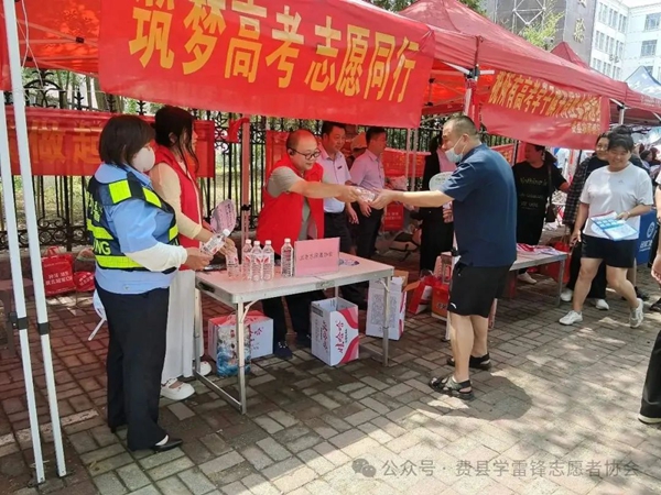 在費(fèi)縣一中、費(fèi)縣二中、費(fèi)縣實(shí)驗(yàn)中學(xué)考點(diǎn),志愿者與社工們連續(xù)四天堅(jiān)守崗位。炎炎烈日下,他們的身影忙碌而堅(jiān)定。一頂頂遮陽(yáng)帳篷、一瓶瓶清涼的飲用水,為考生和家長(zhǎng)們帶來(lái)絲絲涼意。志愿者們穿梭在人群中,為考生遞上礦泉水,緩解他們的緊張與燥熱;給家長(zhǎng)們送上貼心的問(wèn)候,用溫暖的話語(yǔ)和實(shí)際行動(dòng),幫助他們舒緩焦慮情緒。