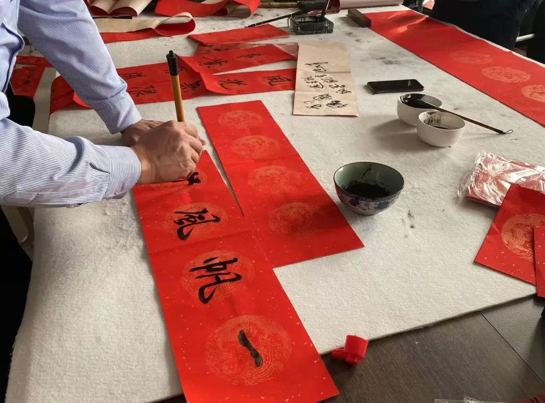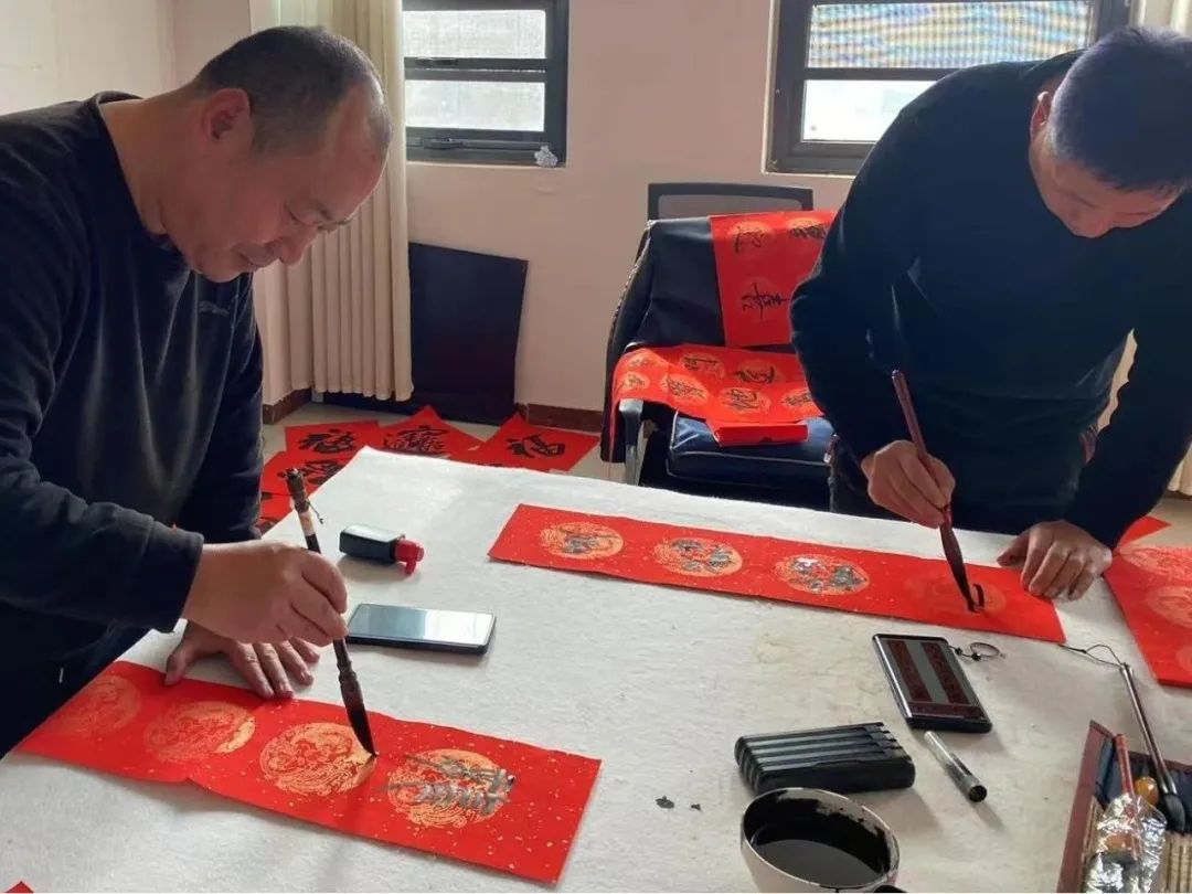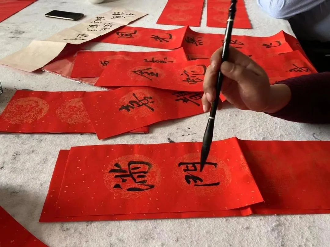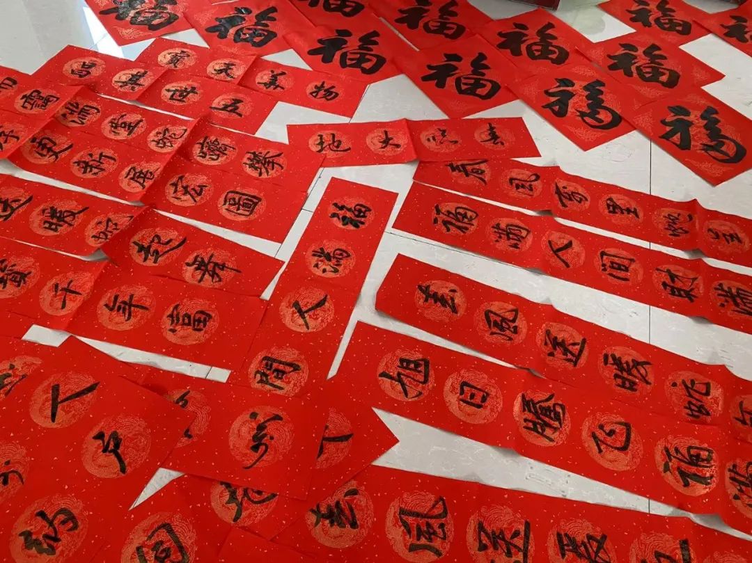 活動(dòng)現(xiàn)場(chǎng),書法老師們和書法愛好者揮毫潑墨,筆跡流水行云,意韻十足,一張張大紅的“福”字、一副副迎春納福的春聯(lián),美好的祝福融入字里行間,傳遞著滿滿的福氣和對(duì)新年美好的祝福。