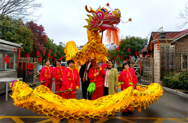 活動(dòng)伊始,護(hù)理院老人們帶來的鑼鼓、秧歌表演瞬間點(diǎn)燃了現(xiàn)場氣氛。緊接著,舞龍節(jié)目登場,志愿者們默契配合,將舞龍技巧展現(xiàn)得淋漓盡致,精彩的表演吸引了老人們的目光,喝彩聲此起彼伏。在志愿者們的熱情帶動(dòng)下,護(hù)理院的老人們和小學(xué)堂的孩子們也紛紛加入扭秧歌的隊(duì)伍。現(xiàn)場歡聲笑語,其樂融融。