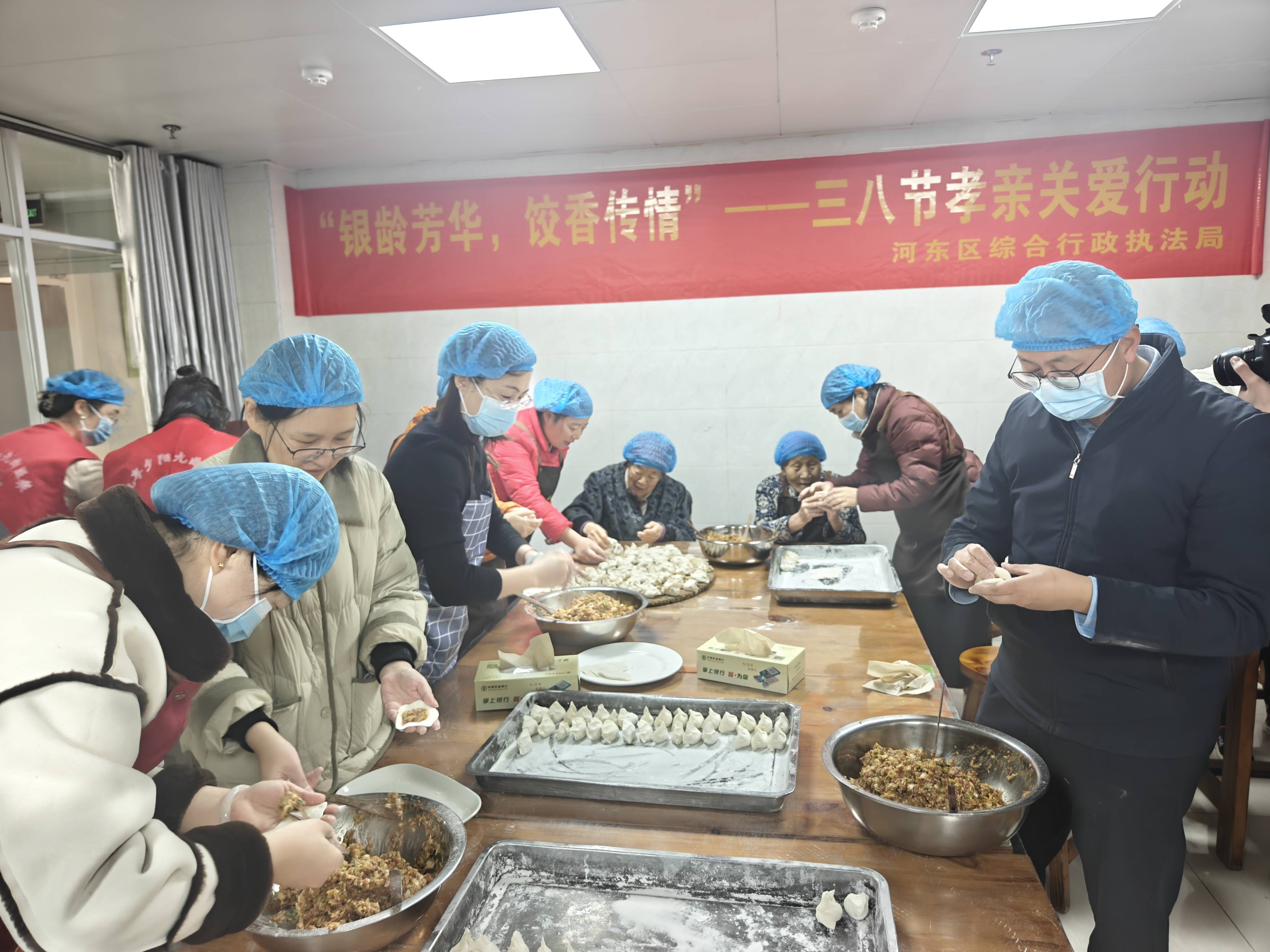 三月春風暖人心,雷鋒精神伴我行,在第62個“學雷鋒日”與“三八”國際婦女節(jié)交匯之際,為傳承新時代雷鋒精神、弘揚巾幗志愿力量,3月6日上午,河東區(qū)綜合行政執(zhí)局“藍色鐵軍”志愿服務(wù)隊,組織20余名女性職工代表與青年志愿者走進九曲街道護理院,開展“銀齡芳華,餃香傳情”主題公益活動,用溫情與巧手為老人們送上節(jié)日祝福。