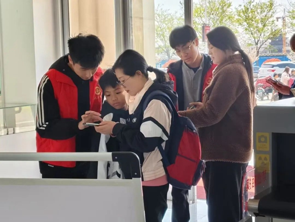 在學(xué)員(游客)接待中心和紀(jì)念館,青年志愿者們認(rèn)真的輔助紀(jì)念館工作人員做好每一位市民游客的入館登記和安全檢查工作,耐心的引導(dǎo)游客使用手機(jī)掃碼登記、有序排隊(duì)、文明參觀,為游客提供力所能及的便利和服務(wù)。 秩序維護(hù)
