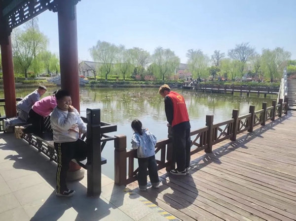 在園區(qū)內(nèi),青年志愿者們輔助工作人員做好陳毅舊居、張?jiān)埔菖f居游客參觀引導(dǎo)工作,并在園區(qū)水域附近時(shí)刻提醒游客注意安全。 支前體驗(yàn)活動(dòng)