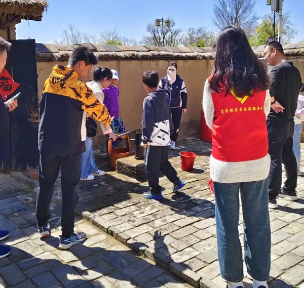 在支前小院里,青年志愿者們活躍在各個(gè)體驗(yàn)環(huán)節(jié),協(xié)助工作人員磨面、打掃石磨、和面、指導(dǎo)烙煎餅、卷煎餅,忙的不亦樂(lè)乎,在沉浸式體驗(yàn)實(shí)踐中和游客共同了解沂蒙人民在革命戰(zhàn)爭(zhēng)年代擁軍支前的感人故事,深切感悟偉大的沂蒙精神。 將帥碑描字