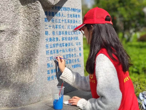 在華野將帥雕塑園,青年志愿者們帶著對(duì)革命先輩的崇敬之情,細(xì)心地掃去雕塑上的落葉和灰塵,手持畫筆,端著顏料,小心翼翼、一筆一畫地對(duì)風(fēng)化褪色的每一座雕塑碑文進(jìn)行描摹填漆,感受革命先輩永垂不朽的精神匯聚和磅礴力量。 在全體志愿者的共同努力下,為期三天的清明節(jié)專題青年志愿服務(wù)活動(dòng)順利完成,青年志愿者們積極向上的精神面貌、主動(dòng)擔(dān)當(dāng)?shù)那啻猴L(fēng)采獲得了游客的一致好評(píng)。 下一步,團(tuán)區(qū)委將持續(xù)搭建青年實(shí)踐鍛煉平臺(tái),發(fā)揮“奉獻(xiàn)、友愛、互助、進(jìn)步”志愿服務(wù)精神,引領(lǐng)廣大團(tuán)員和青年積極參與志愿服務(wù)活動(dòng),在志愿服務(wù)中展現(xiàn)青春風(fēng)采,貢獻(xiàn)青春力量。 |