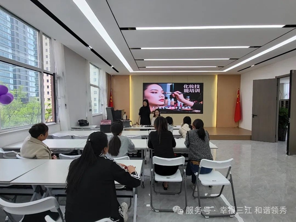 愛美之心人皆有之,女性是現(xiàn)代都市中一抹靚麗的風(fēng)景,特別是家庭女性,希望能夠通過妝容來提升自我形象。為充分展現(xiàn)現(xiàn)代女性風(fēng)采,提升她們的快樂與自信,拓寬就業(yè)渠道,4月19日下午,九曲街道三江領(lǐng)秀社區(qū)聯(lián)合宏坤教育組織開展“妝出風(fēng)采 綻放你我”美妝技能培訓(xùn)活動,吸引了許多社區(qū)女性朋友積極參與。