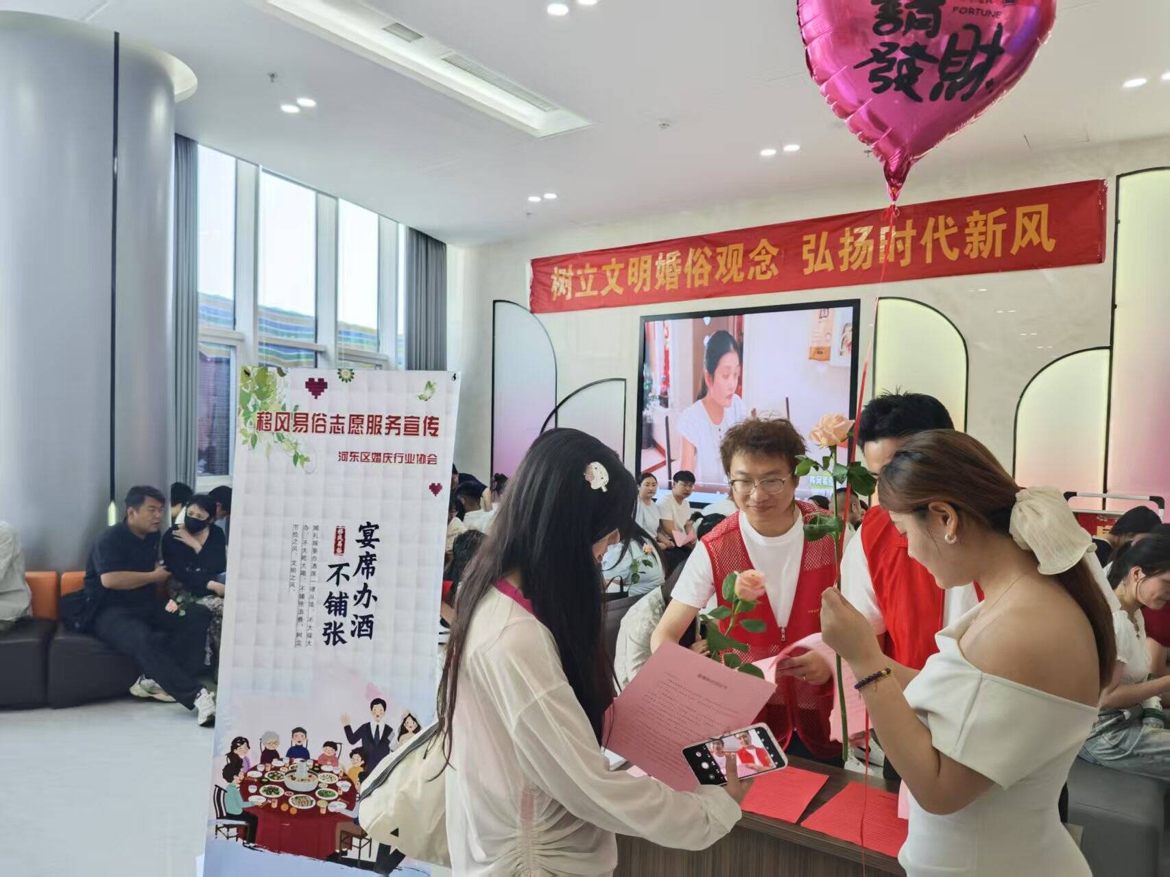聯(lián)合區(qū)婚慶行業(yè)協(xié)會同步開展了“喜事新辦”移風(fēng)易俗宣傳活動和《中華人民共和國民法典》《婚姻登記條例》等相關(guān)婚姻法律法規(guī)宣傳活動,倡導(dǎo)文明、節(jié)儉、健康婚俗新風(fēng)尚的同時增強婚姻當(dāng)事人法律意識,預(yù)防和減少婚姻家庭糾紛,積極倡導(dǎo)平等、和睦、文明的婚姻家庭關(guān)系。當(dāng)天共發(fā)放宣傳資料200余份。