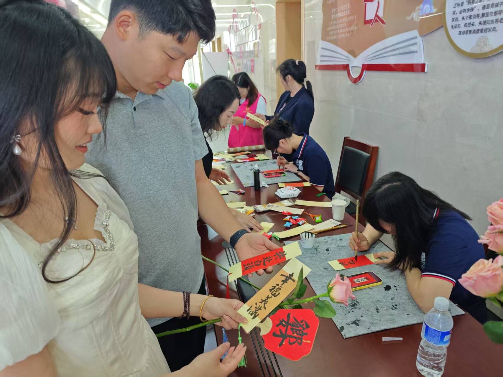 婚俗文化宣傳長廊內(nèi)“佳偶天成 喜結(jié)連理”書法活動廣受新人們青睞。服務(wù)中心特別邀請書法愛好者現(xiàn)場書寫新婚“囍”字、“佳偶天成”等團扇和書簽,為新人們送上美好祝福。通過活動,新人們深切感受到中華傳統(tǒng)書法文化的獨特魅力,也在其中領(lǐng)略到婚姻的厚重與珍貴,增進了對傳統(tǒng)文化的認知,更以書法為載體,飽含著新人們對婚姻初心使命的追求,有助于新人們建立牢固的婚姻基礎(chǔ)、促進社會和諧。