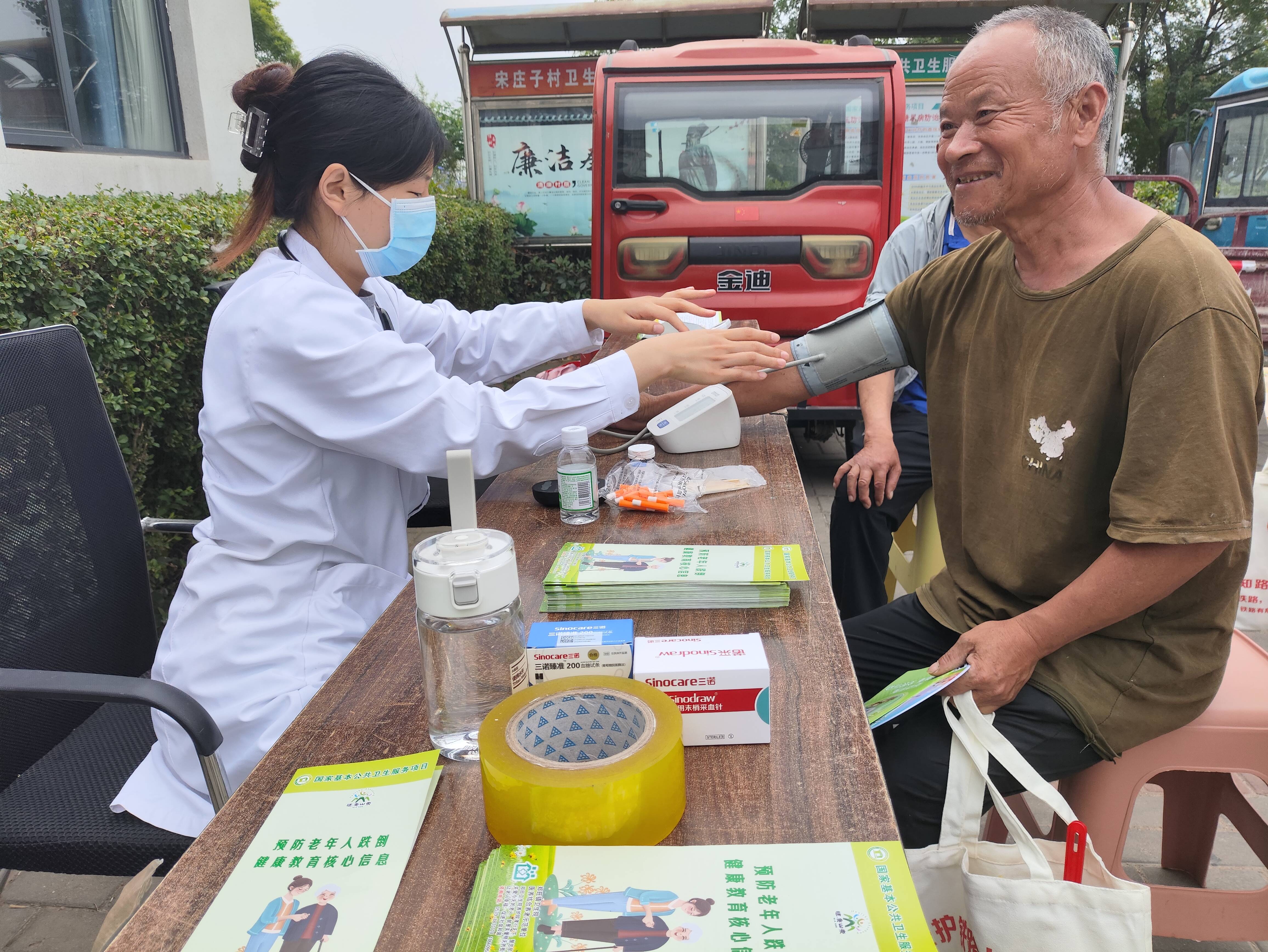 為深入貫徹臨沂市《大力培育“文明鄉(xiāng)風(fēng)、良好家風(fēng)、淳樸民風(fēng)”活動方案》,弘揚(yáng)社會主義核心價值觀,增強(qiáng)轄區(qū)群眾的幸福感。5月22日上午,鄭旺鎮(zhèn)“政府?dāng)[攤,群眾趕集”走進(jìn)宋莊村,為附近群眾提供多項便利的志愿服務(wù)項目,旨在提高群眾的幸福感和滿足感。 此次愛心義診專區(qū)邀請河?xùn)|區(qū)第二人民醫(yī)院的醫(yī)生為現(xiàn)場老人提供測血糖、測血壓服務(wù)項目。醫(yī)生們耐心地解答老人們的疑問,對各種常見病、多發(fā)病問題給予健康知識指導(dǎo),并且針對日常用藥儲備、中老年常見疾病防治等方面的知識進(jìn)行科普。