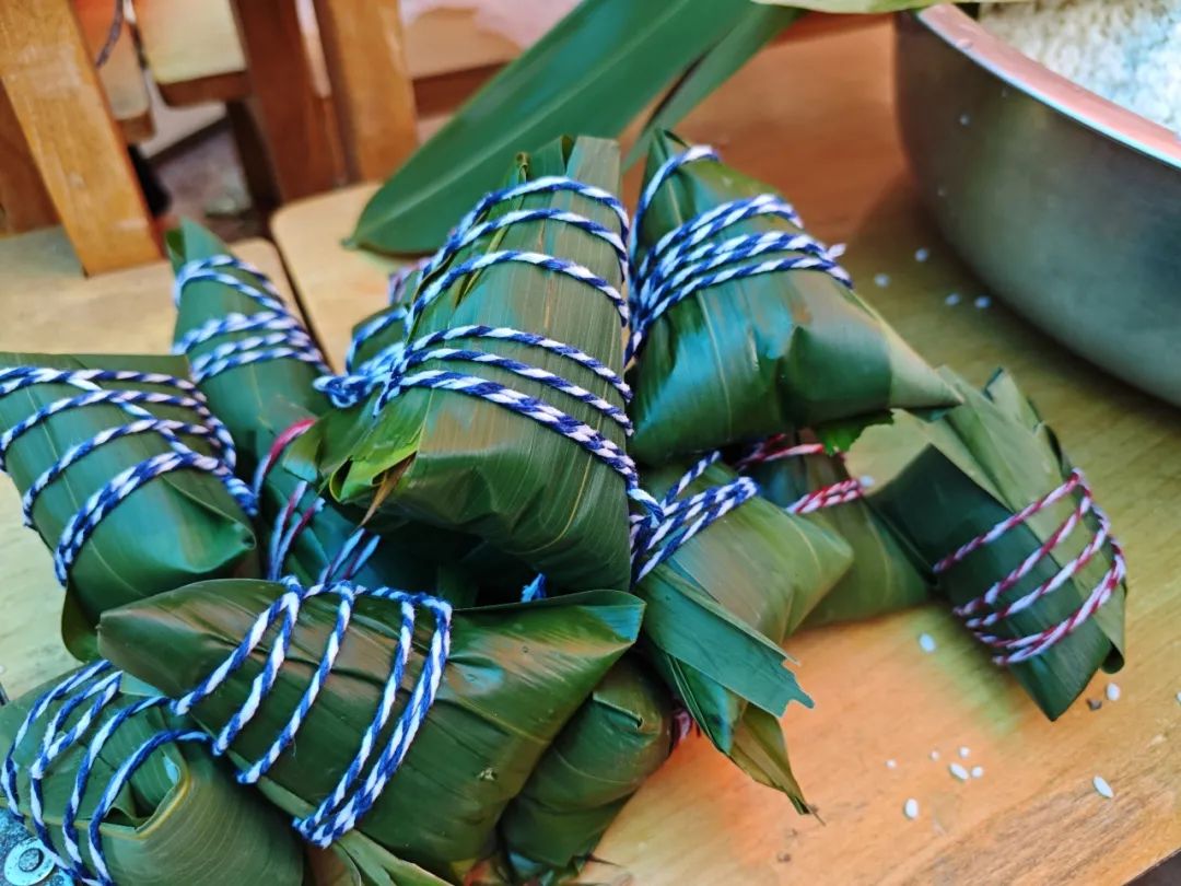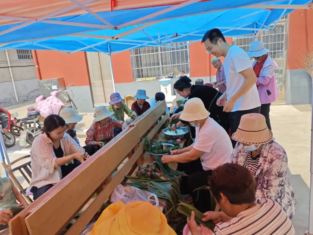粽葉翻飛鄰里情,清香暖意敬耄耋 “米別漏!繩子扎緊!”村委門口變身“粽子工坊”,選調(diào)生和村民圍坐成圈,跟“包粽能手”王姐學(xué)藝,折葉、填米、塞棗、捆繩,動(dòng)作從生疏到嫻熟,歡笑聲裹著粽香盈滿院落,包粽子也從“手藝活”變成“情感課”,大家一起嘮家常、話桑麻,其樂融融。