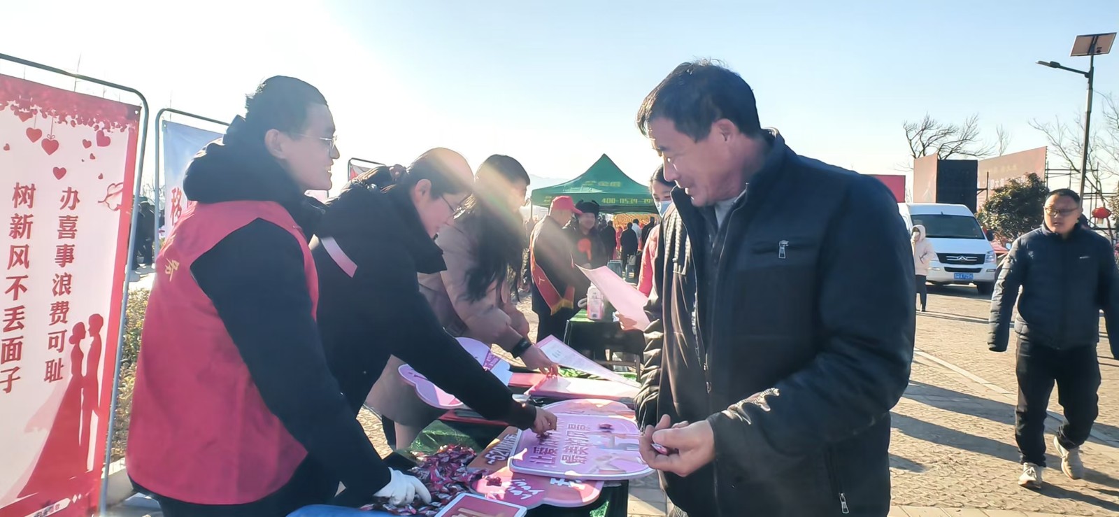 為倡樹文明新風(fēng),推進(jìn)移風(fēng)易俗工作,1月7日,莒南縣文明辦在臨沂市新春季“沂蒙大集”啟動(dòng)儀式現(xiàn)場(chǎng),開展“移風(fēng)易俗趕大集,文明新風(fēng)拂莒南”主題宣傳活動(dòng),為前來(lái)趕集的群眾送去文明新風(fēng)。