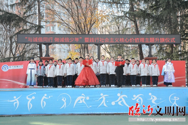 為了進(jìn)一步引導(dǎo)金盾學(xué)子樹立正確的價值觀,誠信做人,踏實做事,12月23日,臨沂金盾小學(xué)舉行“與誠信同行 做誠信少年”暨踐行社會主義核心價值觀主題升旗儀式。