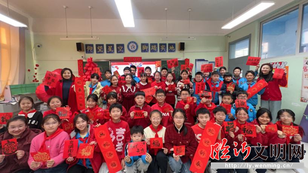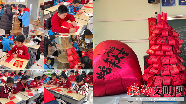 創(chuàng)意滿溢,“新年樹”拔地而起。廢舊紙箱在同學(xué)們的巧手下,神奇變身成堅(jiān)固樹干。大家拿起毛筆,飽蘸墨香,將心愿凝于筆端,墨痕未干的祝??ㄆN在樹干上咔嚓一聲,鏡頭定格,同學(xué)們簇?fù)碇履陿?,笑容燦爛。