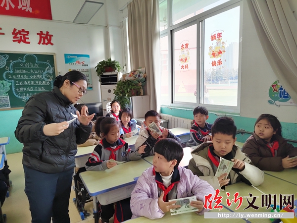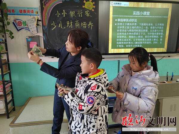 寓教于樂:從認(rèn)識(shí)人民幣到規(guī)劃壓歲錢 活動(dòng)伊始,理財(cái)經(jīng)理以“錢的起源”為切入點(diǎn),通過圖文并茂的講解,帶領(lǐng)孩子們了解貨幣,生動(dòng)再現(xiàn)了從“以物易物”到紙幣流通的歷史演變,展示了不同面額人民幣的設(shè)計(jì)巧思。孩子們驚奇地發(fā)現(xiàn),100元紙幣背面是莊嚴(yán)的人民大會(huì)堂,50元紙幣背面是巍峨的布達(dá)拉宮,20元紙幣上印著桂林山水,更有其他紙幣描繪了波濤洶涌的三峽夔門、雄偉的泰山、俊秀的三潭印月?!霸瓉砑垘派喜刂@么多祖國美景!”一名學(xué)生興奮地說。 在“鑒別真假人民幣”環(huán)節(jié),理財(cái)經(jīng)理通過實(shí)物展示,逐一講解水印、安全線、光變數(shù)字等防偽特征。孩子們化身“小偵探”,觸摸紙幣的凹凸紋理,觀察熒光標(biāo)記,現(xiàn)場(chǎng)氣氛熱烈。隨后,理財(cái)經(jīng)理拋出問題:“如果有1000元壓歲錢,你會(huì)怎么花?”孩子們踴躍舉手發(fā)言,“我要存一部分”“買書和文具”“捐給山區(qū)小朋友”……稚嫩的回答中透出對(duì)金錢的初步規(guī)劃意識(shí)。