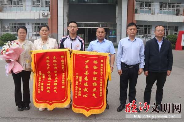 5月16日,失主張先生特意到臨沂第十一中學(xué)送來鮮花、錦旗,感謝九年級一班李昕棟同學(xué)拾金不昧的善舉,感恩學(xué)校培育品學(xué)兼優(yōu)、向上向善的新時代好少年。
