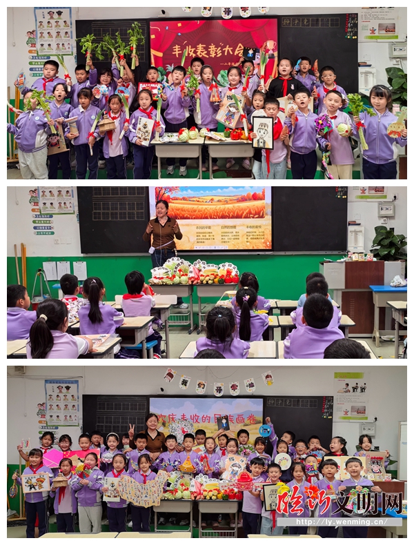 活動伊始,老師通過PPT和趣味提問引出主題:“米飯、水果從哪里來?不同民族如何慶祝豐收?”隨后,老師借助圖像和視頻,展示稻田、果園等豐收場景,介紹彝族火把節(jié)、藏族望果節(jié)等民族習俗,引導學生珍惜糧食、尊重多元文化。 手工作品分享將活動推向高潮。同學們依次上臺,展示自制的維吾爾族小花帽、蒙古族馬頭琴模型等,并分享制作心得和民族文化,臺下掌聲不斷。通過互評,優(yōu)秀作品榮獲“特色蔬菜獎”。 活動最后,老師為同學們發(fā)放玉米、栗子、紅棗等農(nóng)產(chǎn)品,并寄語大家“珍惜糧食、團結同學,做民族團結的小使者”。全體學生手持作品和農(nóng)產(chǎn)品合影留念,記錄溫馨時刻。 本次活動將民族團結教育與豐收體驗相融合,不僅讓學生在互動中了解民族文化和勞動意義,更在心中埋下“民族團結一家親”的種子,為營造和諧向上、互助成長的班級氛圍奠定了堅實基礎。(季蘭玲) |